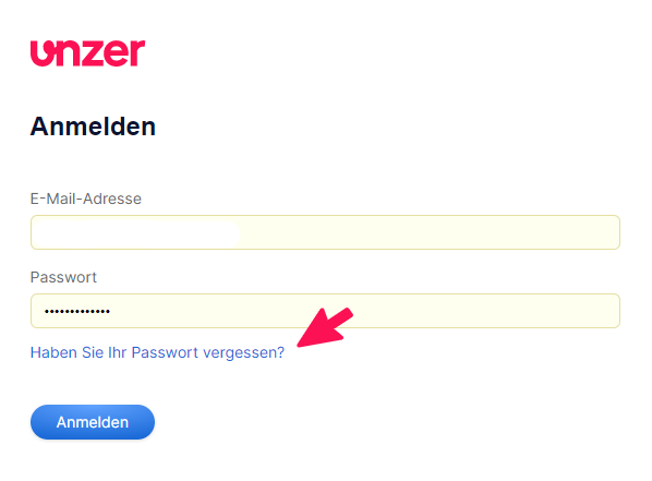 In diesem Fall können Sie die „Passwort zurücksetzen“-Funktion auf der Unzer Insight-Startseite verwenden.