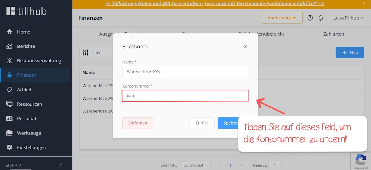 Da in unserem System standardmäßig der SKR03 hinterlegt ist, kann es sein, dass Sie die Kontonummern der o.g. Konten ggf. ändern müssen, beispielsweise wenn Ihr*e Steuerberater*in den SKR04 nutzt.