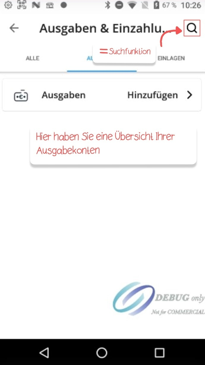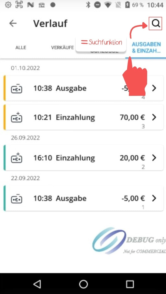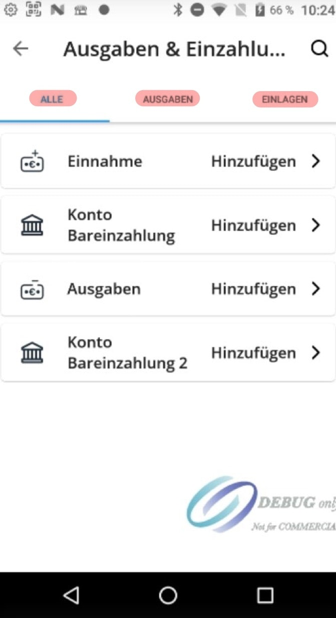 Tippen Sie auf den Reiter "Ausgaben & Einzahlungen", um eine Auflistung Ihrer sämtlichen Ausgaben & Einlagen zu erhalten (Bild 2).