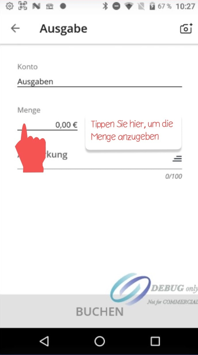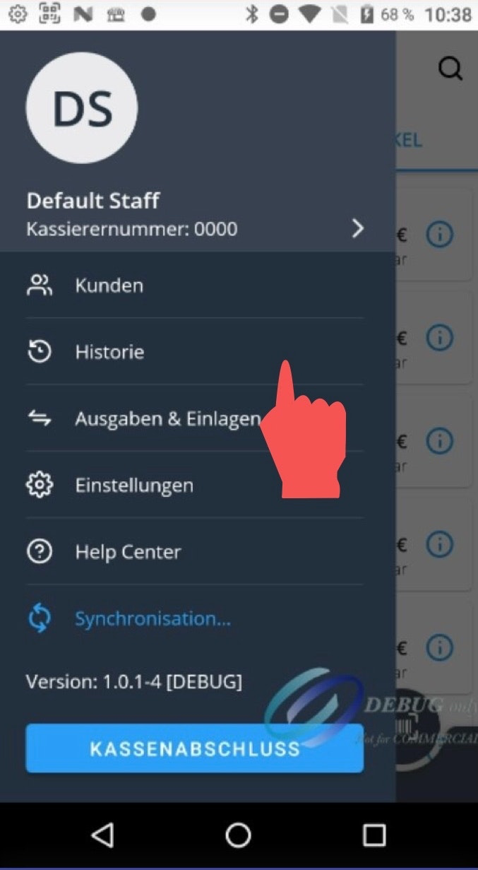 Tippen Sie hierfür unten links auf das Hauptmenü-Symbol und navigieren Sie dann zum Menüpunkt "Ausgaben & Einlagen".
