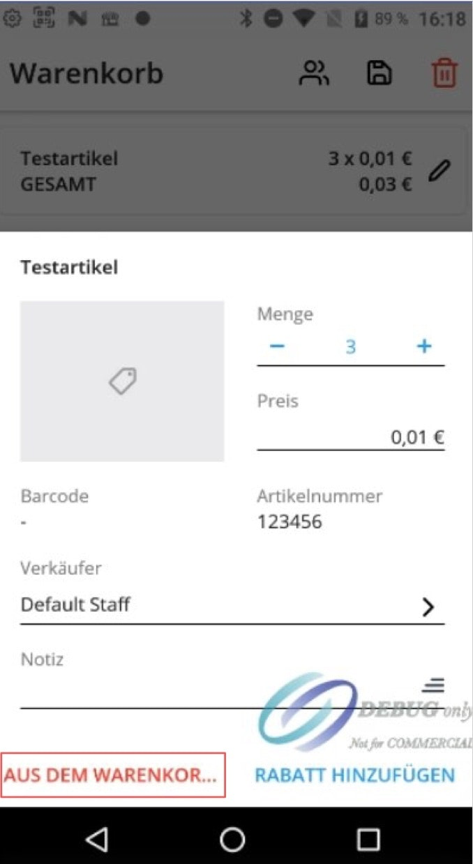 Wählen Sie anschließend unten links die Option „Aus dem Warenkorb entfernen“ aus.