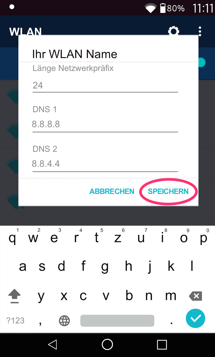Bitte tippen Sie das WLAN-Symbol einen Moment länger an. Es öffnet sich ein neues Menüfenster.