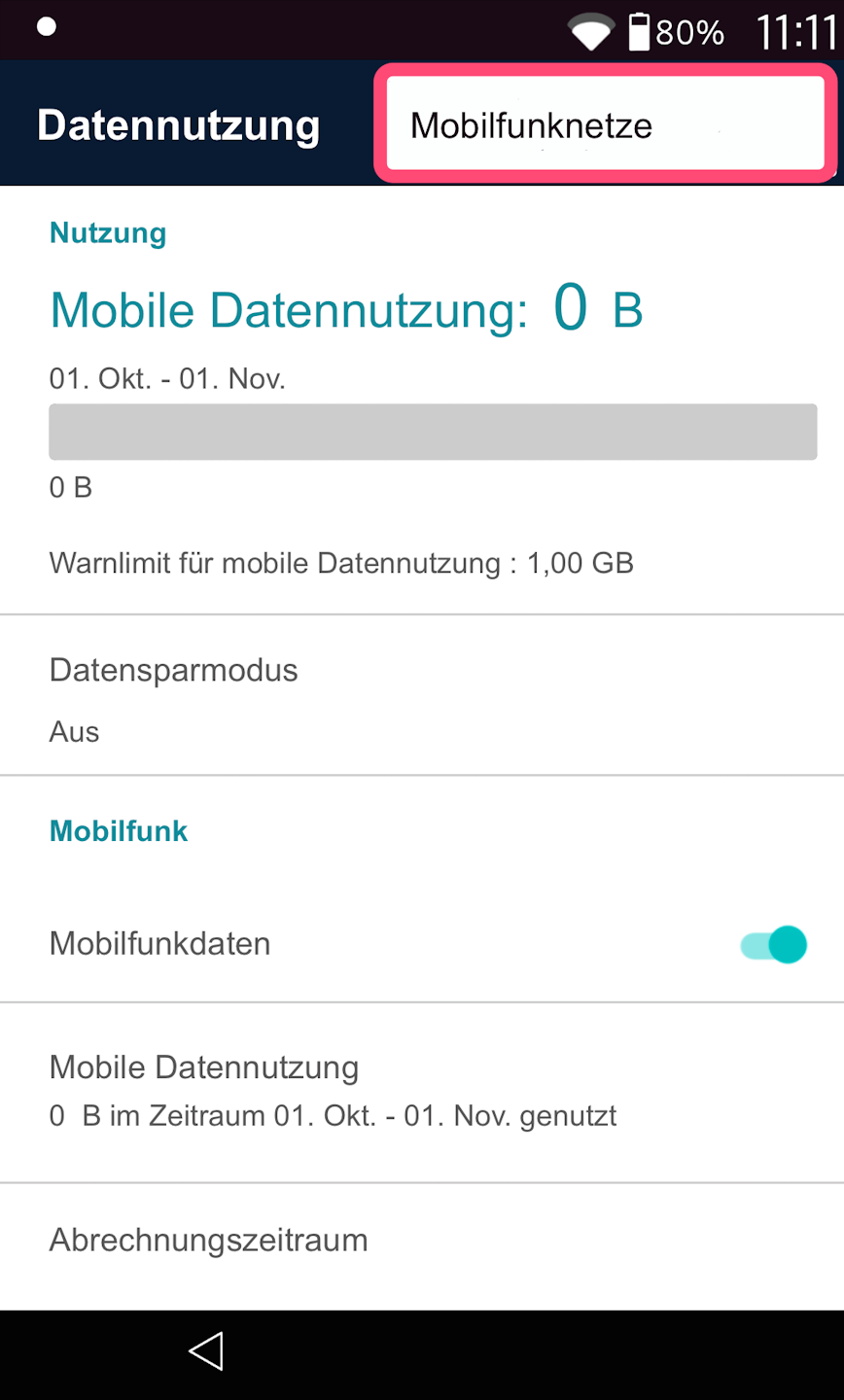 Abb. 1 - Bitte tippen Sie oben rechts die drei Punkte an und wählen bitte Mobilfunknetze aus (Abb. 2).