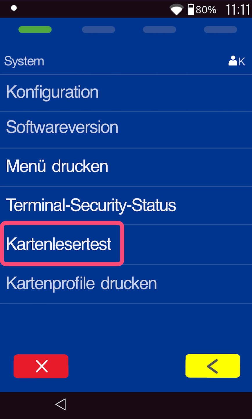 Durch die Auswahl des Kartenlesertest können Sie nun folgende Varianten hintereinander testen: