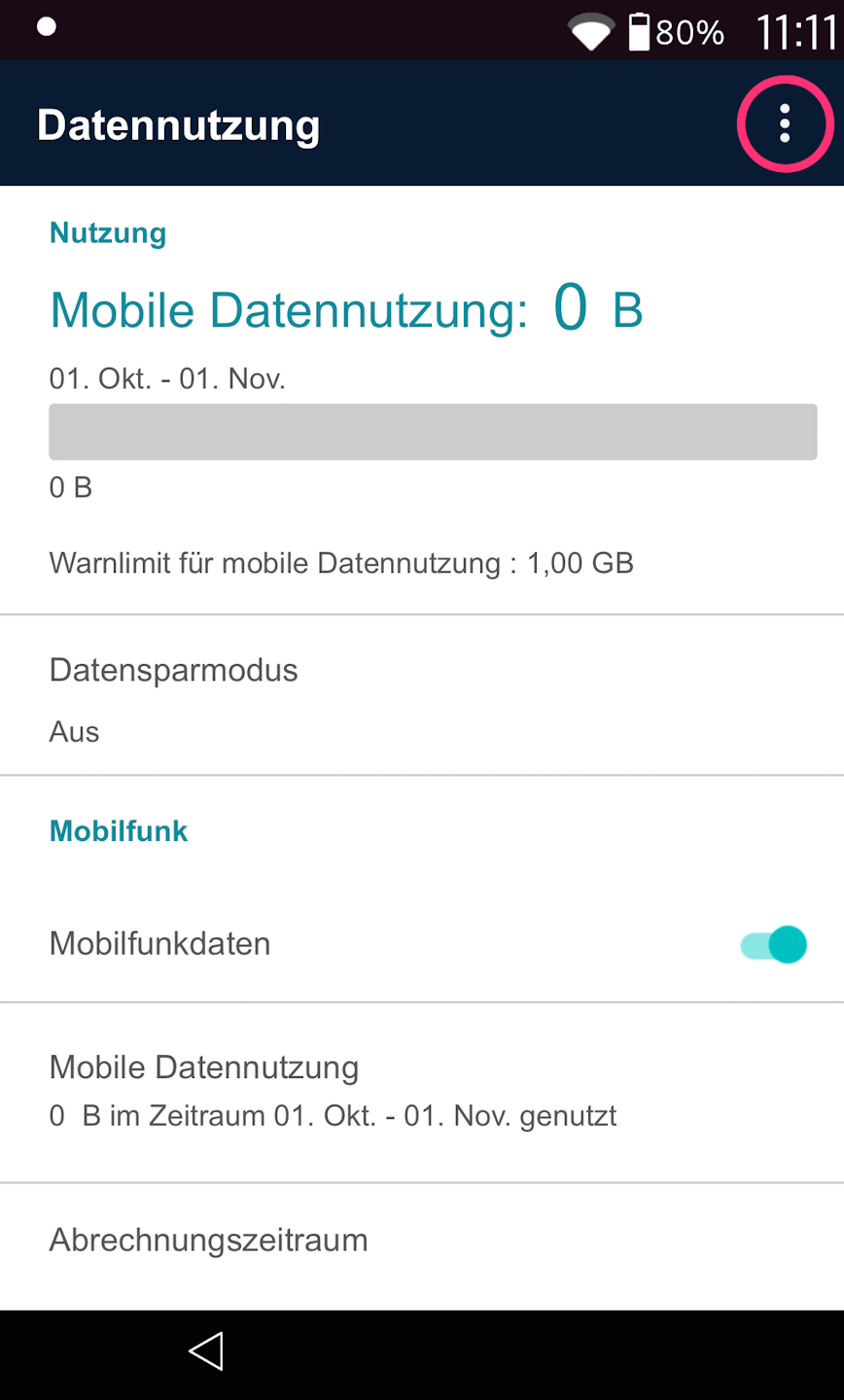 Abb. 1 - Bitte tippen Sie oben rechts die drei Punkte an und wählen bitte Mobilfunknetze aus (Abb. 2).