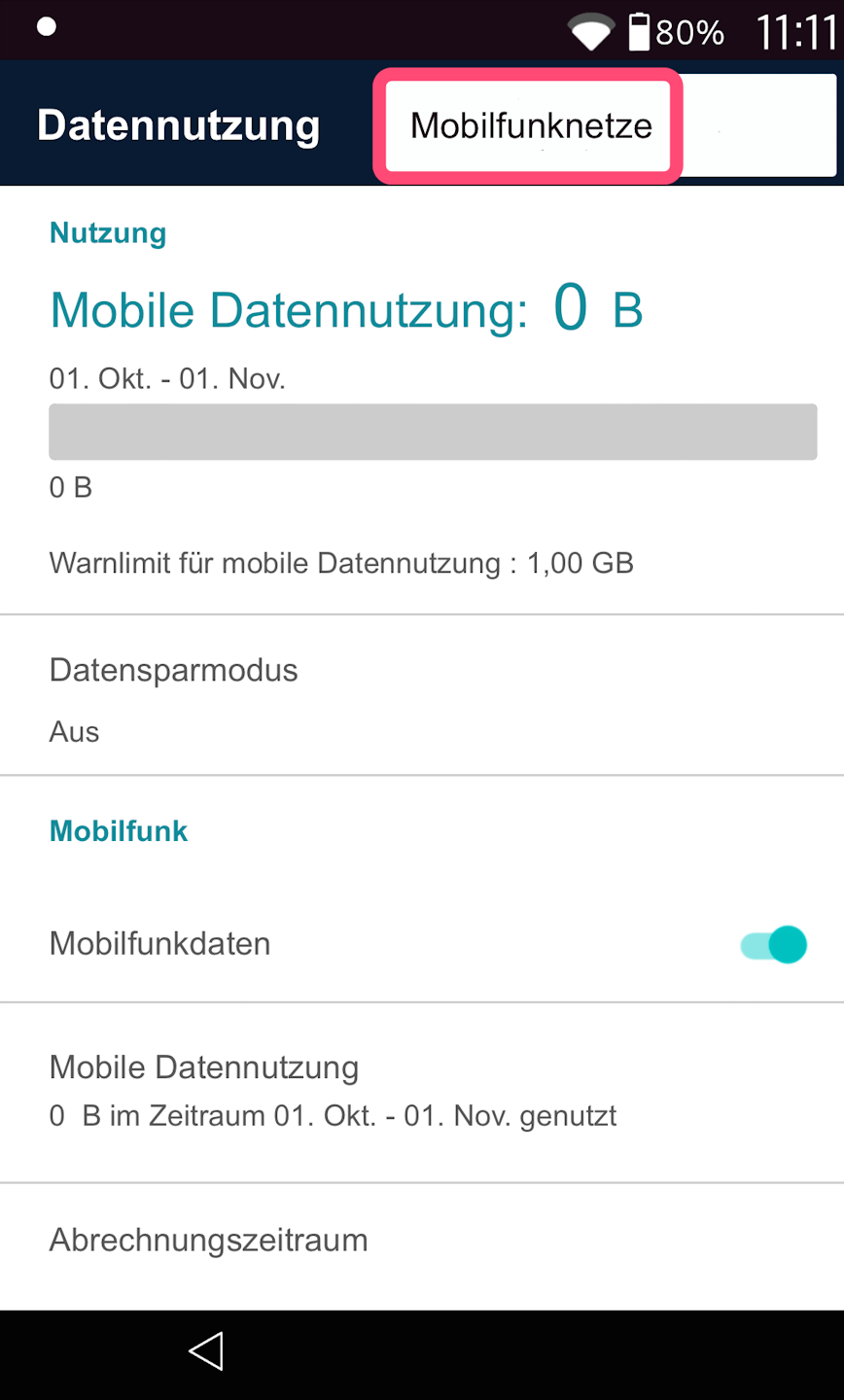 Nun können Sie zu jeder Zeit durch kurzes Antippen des SIM-Kartensymbols (Abb. 2) in den Androideinstellungen einsehen, welches mobile Funknetz Sie derzeit nutzen.