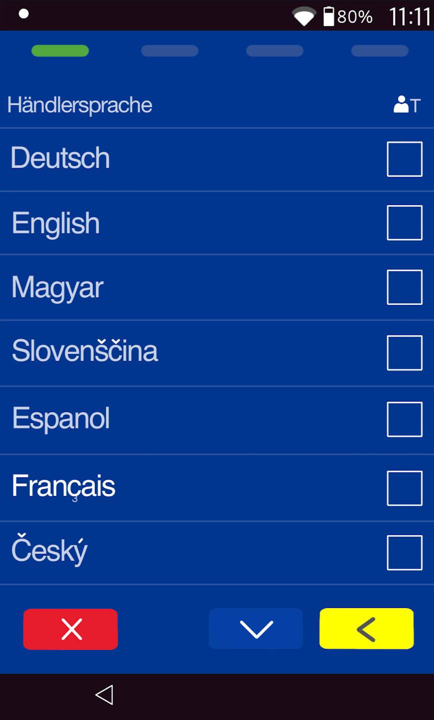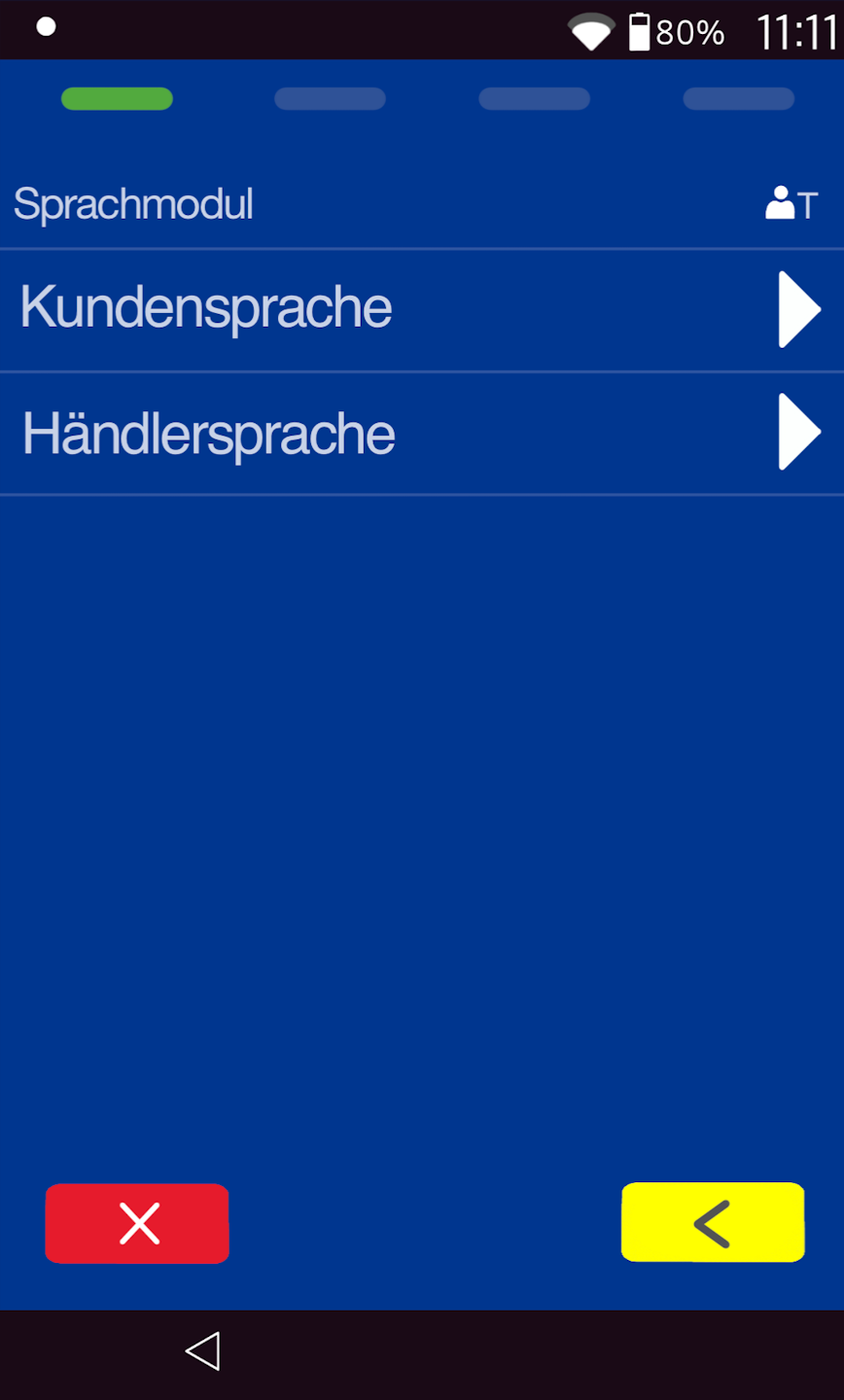 Sie können die Sprache für alle Kunden- und/oder Händleranzeigen ändern. Bitte treffen Sie durch Antippen Ihre Auswahl.