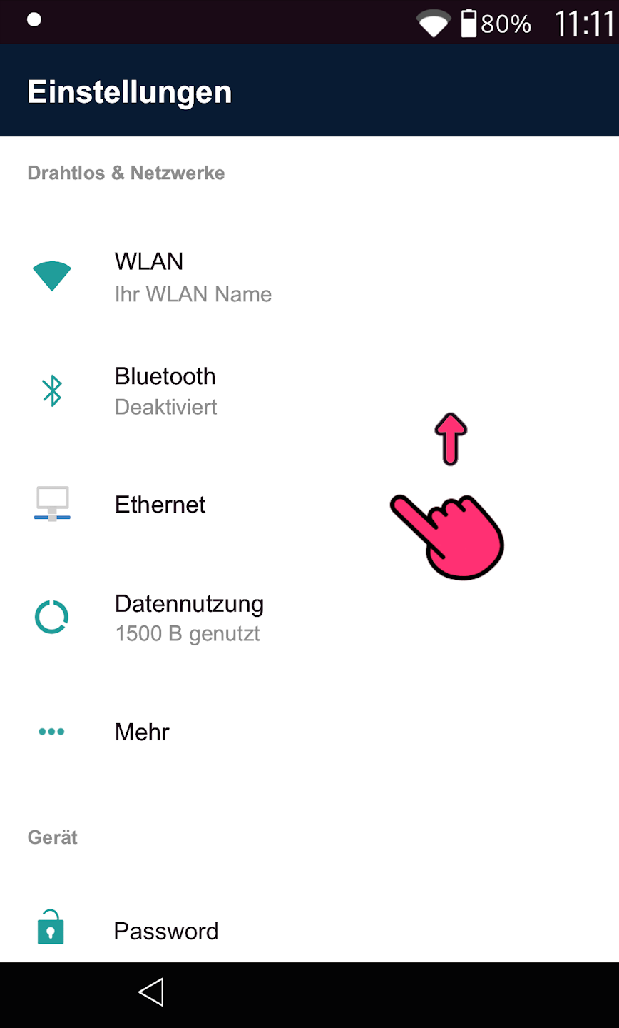 Bitte wischen Sie an der oberen Displaykante nach unten, um in das Androidsystem zu gelangen.