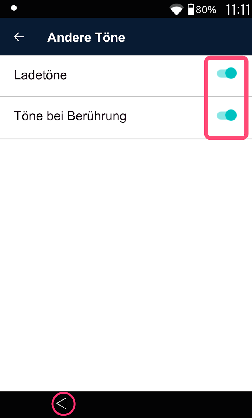 Danach navigieren Sie bitte auf Andere Töne. Dort können Sie einstellen, ob Lade- und Berührungstöne aktiviert werden sollen Abb. 2.