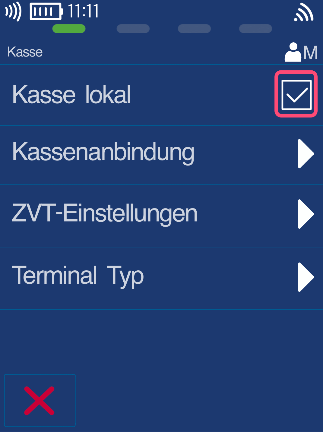 Bitte setzen Sie den Haken durch Antippen bei Kasse lokal.