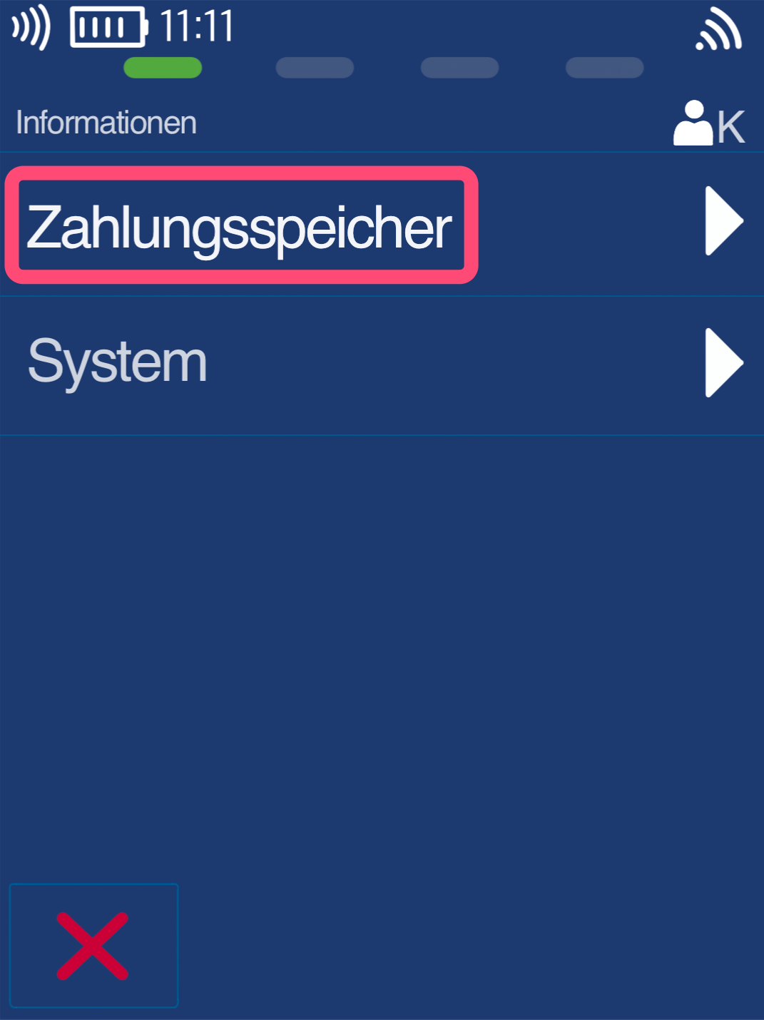 Bitte wählen Sie den Button Zahlungsspeicher.