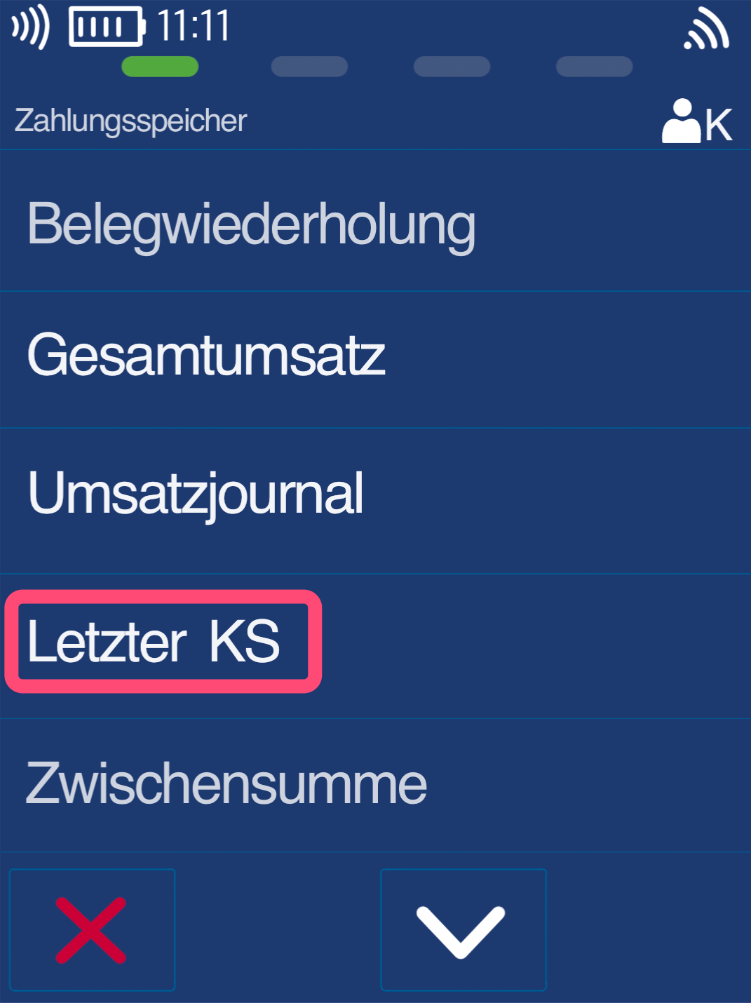 Bitte wählen Sie den Button Letzter KS (Kassenschnitt).