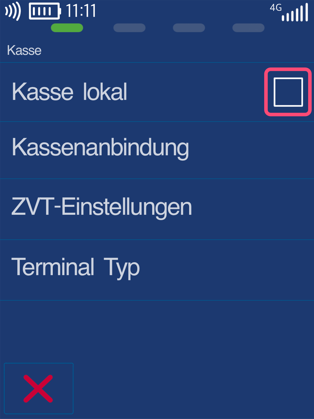 Abb. 1 - Kasse lokal durch Antippen deaktivieren.