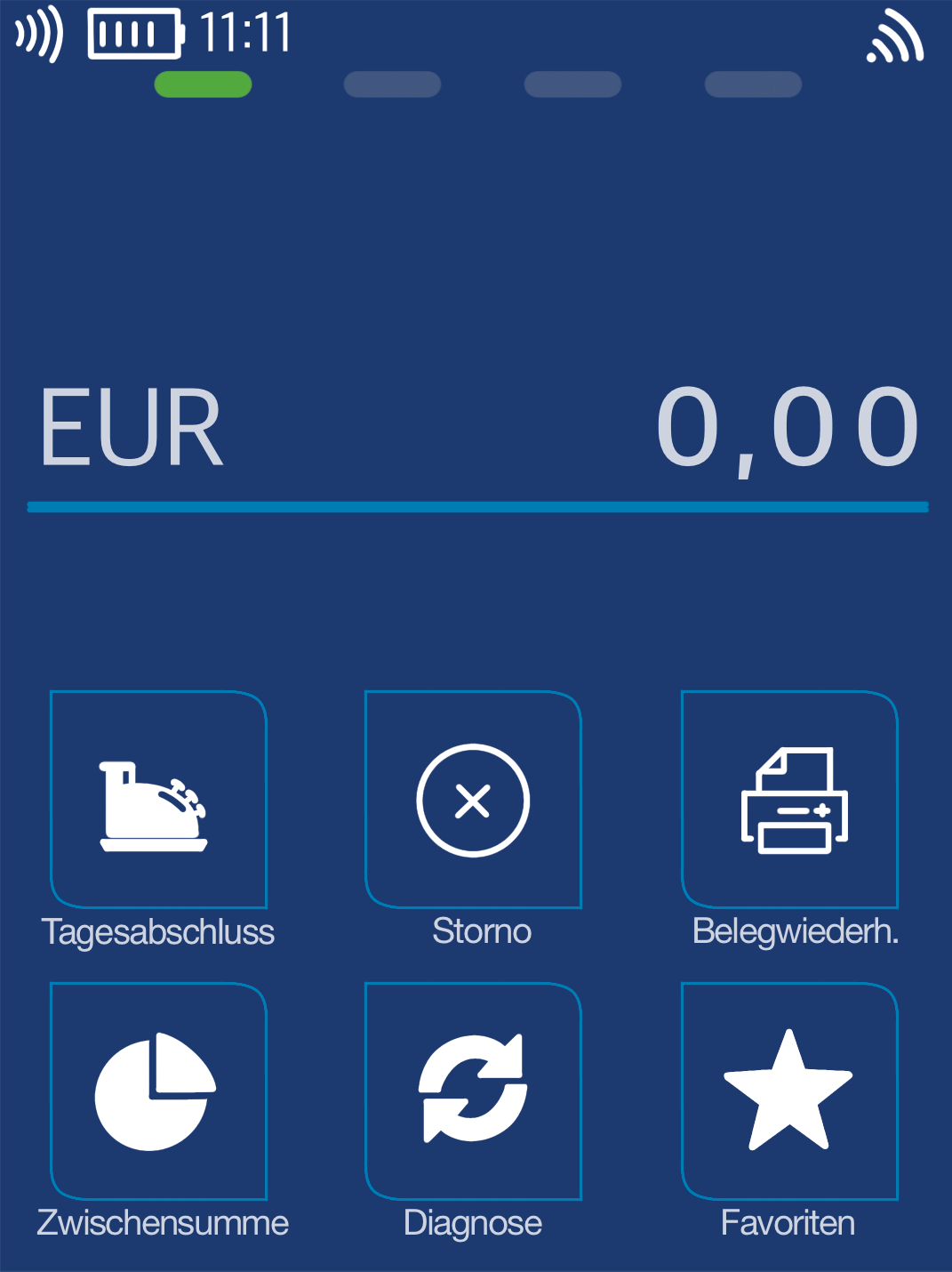 Durch die Deaktivierung des Menüpunktes Kasse lokal ist keine manuelle Betragseingabe mehr möglich. Sie sehen nur im Display "Terminal bereit".