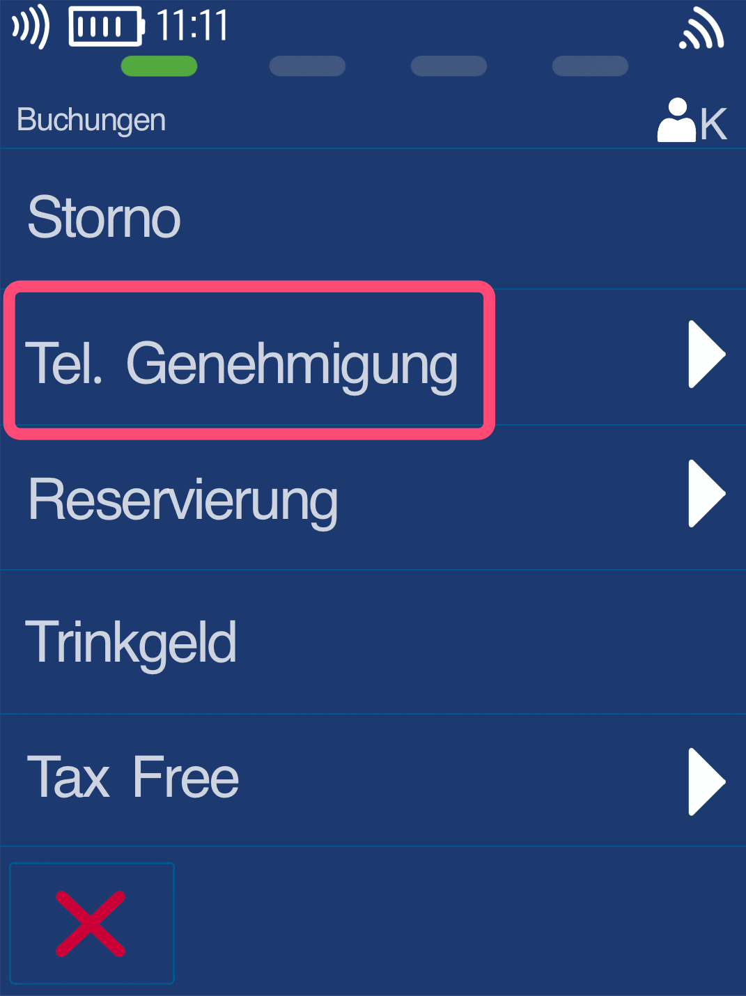 In diesem Schritt tippen Sie bitte auf Tel. Genehmigung