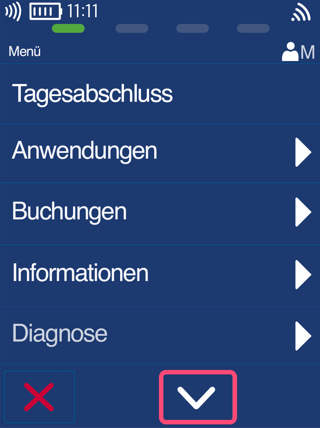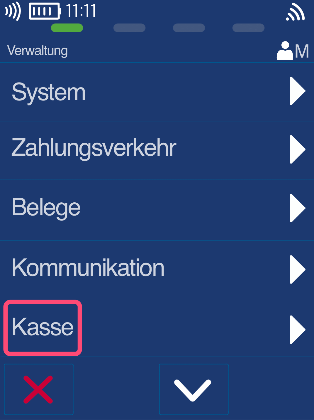 Menü Kasse