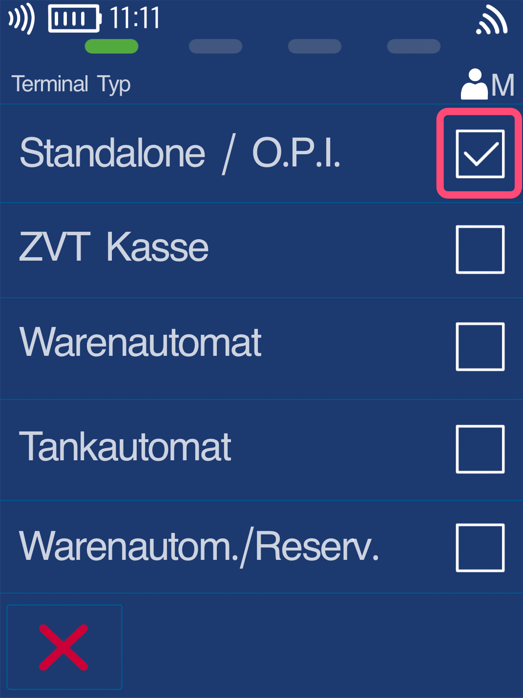 Zum Abschluss prüfen Sie bitte, ob unter dem Menüpunkt Terminal Typ - Standalone / OPI aktiviert ist.