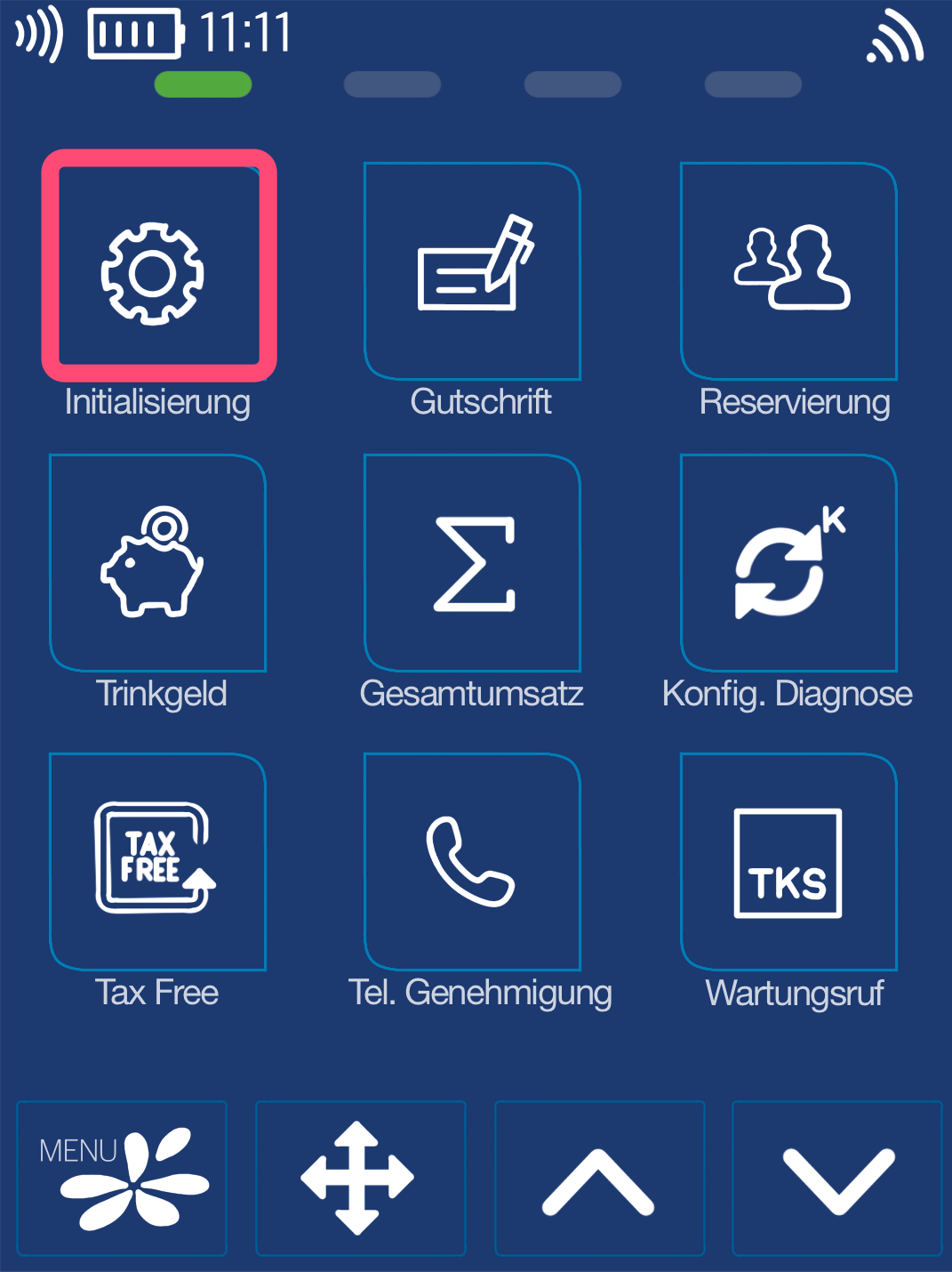 Bitte tippen Sie im 1. Schritt die Favoritentaste an. Es werden Ihnen nun verschiedene Favoriten angeboten. Bitte wählen Sie die Initialisierung aus (Abb. 2).