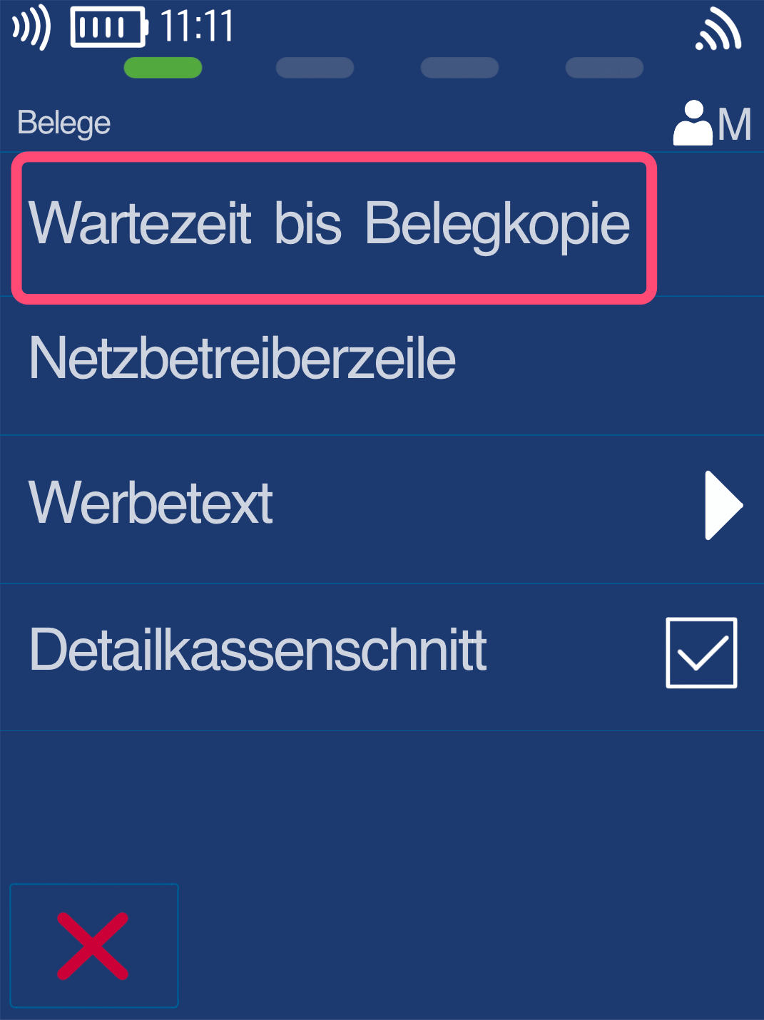 Wählen Sie hier bitte den Menüpunkt Wartezeit bis Belegkopie aus.