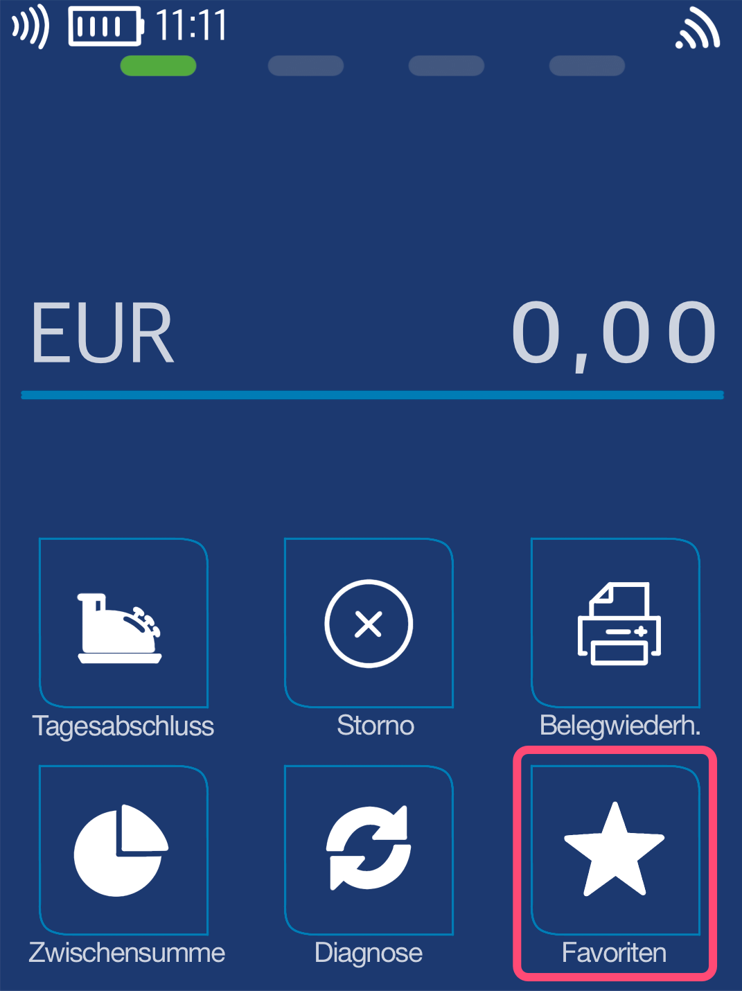 Bitte wählen Sie den Menüpunkt Favoriten aus.