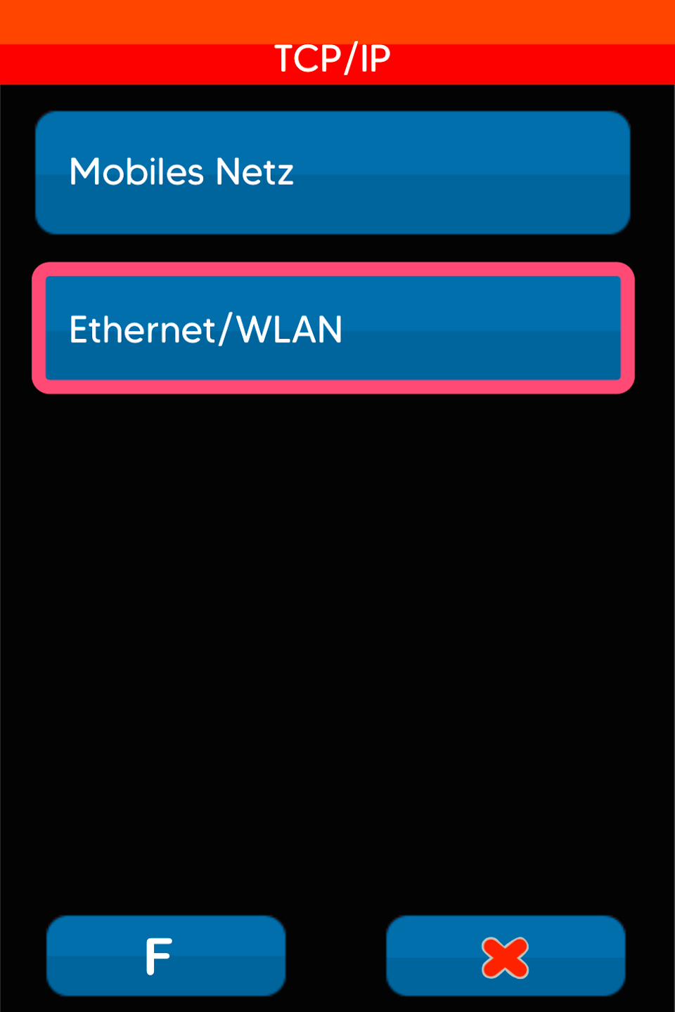 Bitte Ethernet/WLAN auswählen