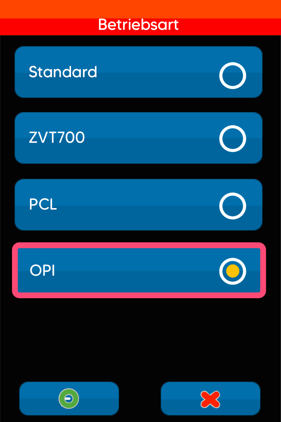 Falls Sie ein Tillhub-Kassensystem nutzen, so wählen Sie bitte OPI aus.