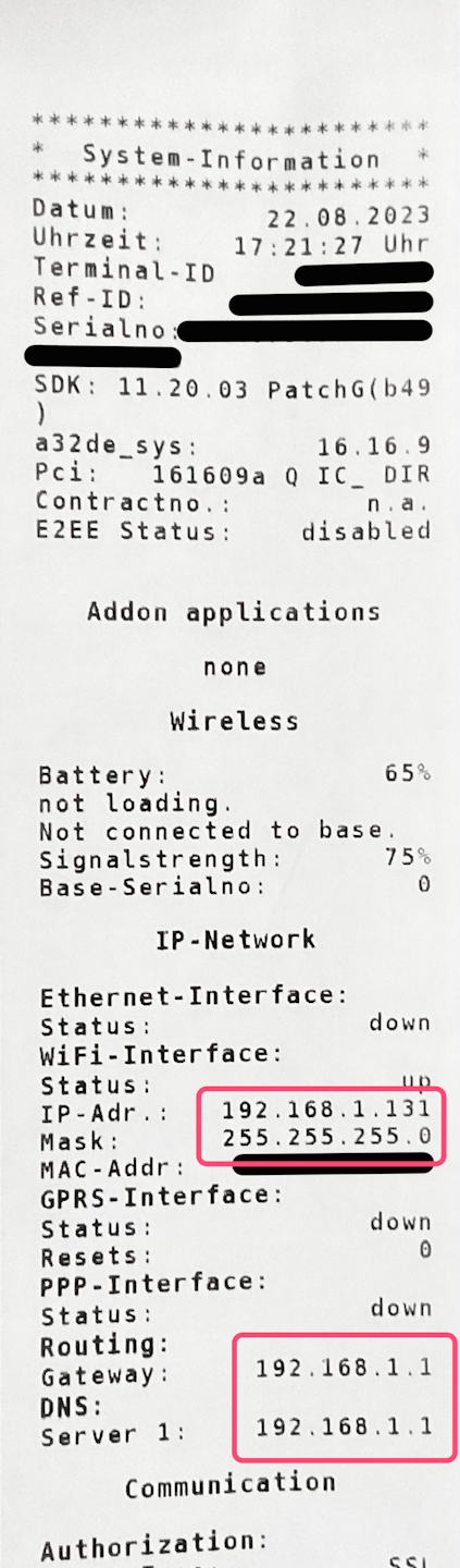 Ingenico - IP-Daten auslesen