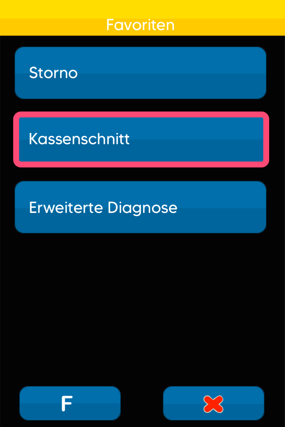 Im Favoritenmenü wählen Sie bitte den Kassenschnitt aus.