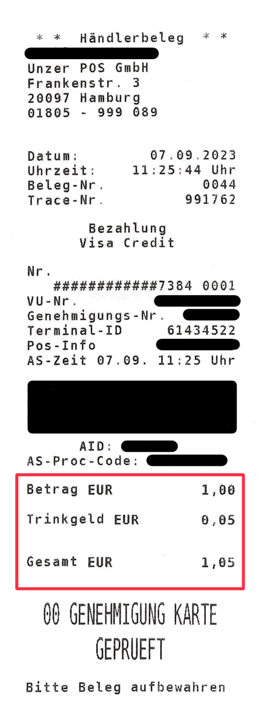 Abb. 1 - Direkt nach der Betragseingabe erscheint die Trinkgeldabfrage.