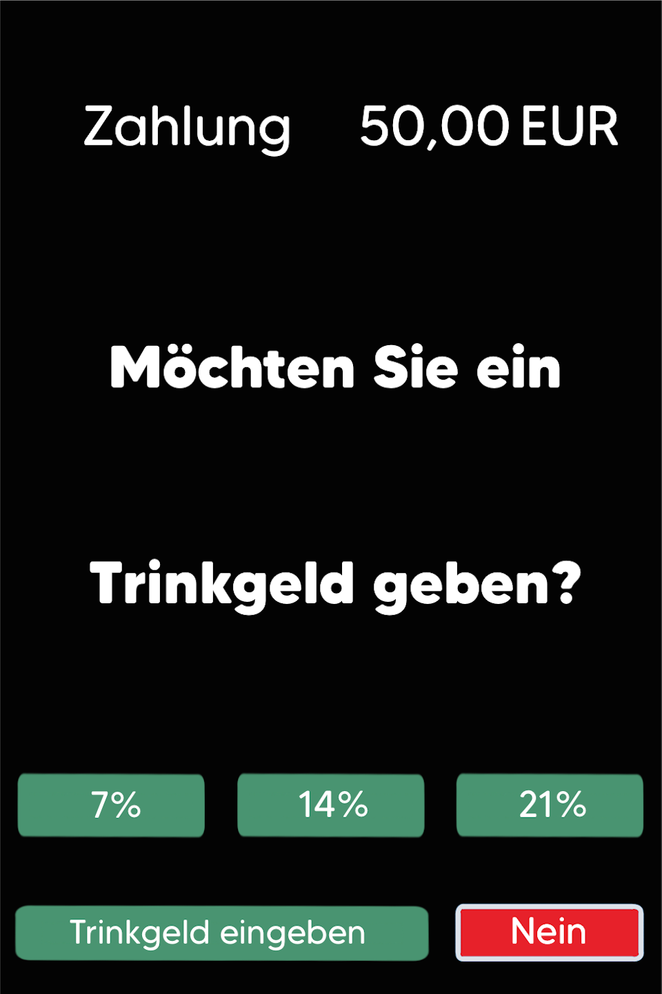 Trinkgeldabfrage direkt nach der Betragseingabe