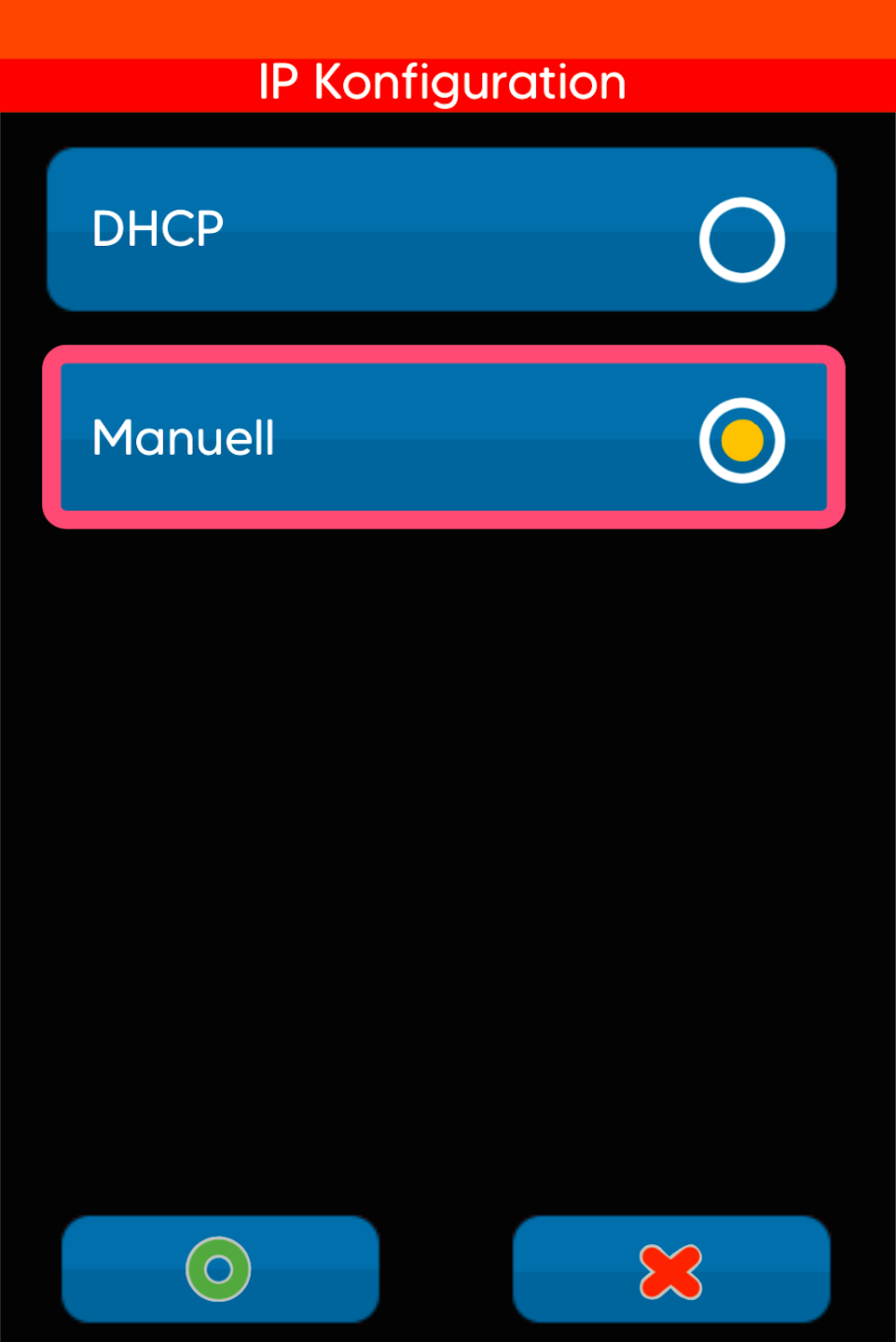 Bitte bestätigen Sie mit der grünen OK Taste die Abfrage, damit alle hinterlegten IP-Daten gespeichert werden.