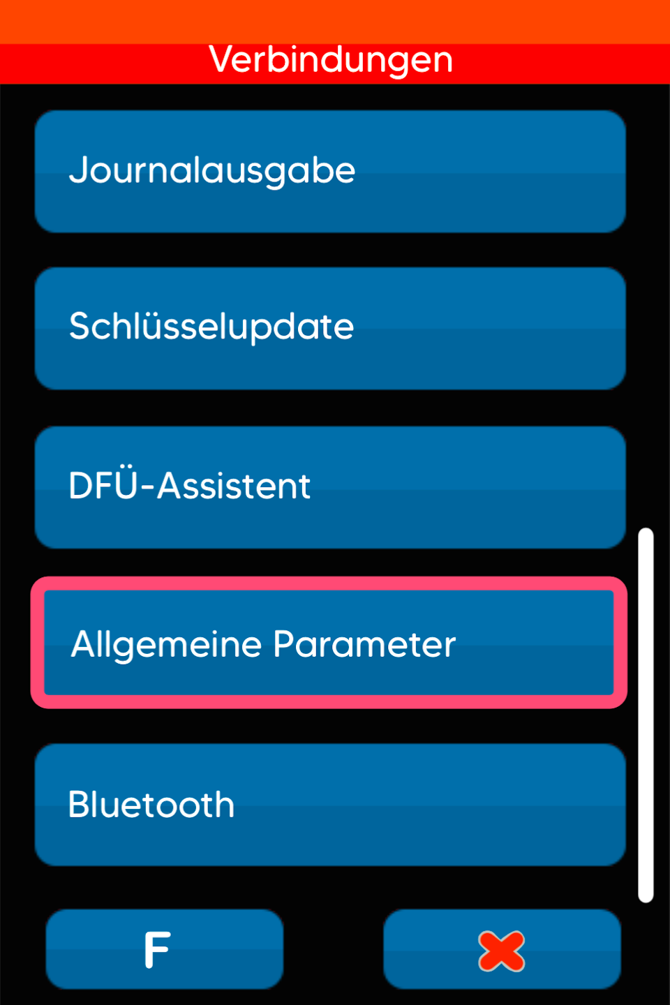 Bitte wischen/scrollen Sie zum Menüpunkt Allgemeine Parameter (Abb. 2)