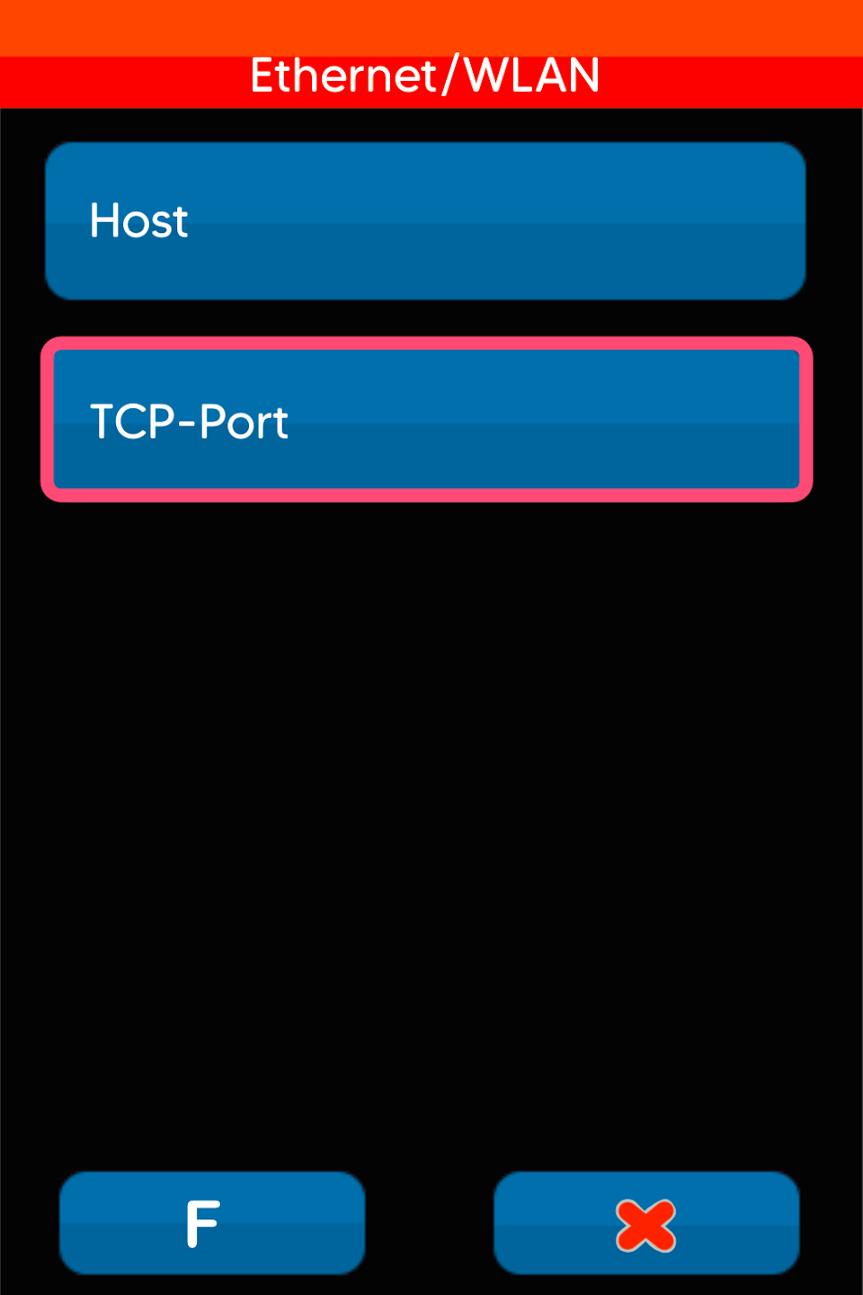 Sollte dort eine andere Portnummer eingetragen sein, korrigieren Sie diese bitte mit der gelben CLR Taste und tippen Sie die richtige Portnummer ein. Bestätigen Sie bitte die Eingabe mit der grünen OK Taste. Drücken Sie 3-mal die rote Stopptaste und speichern Sie die Parameter.