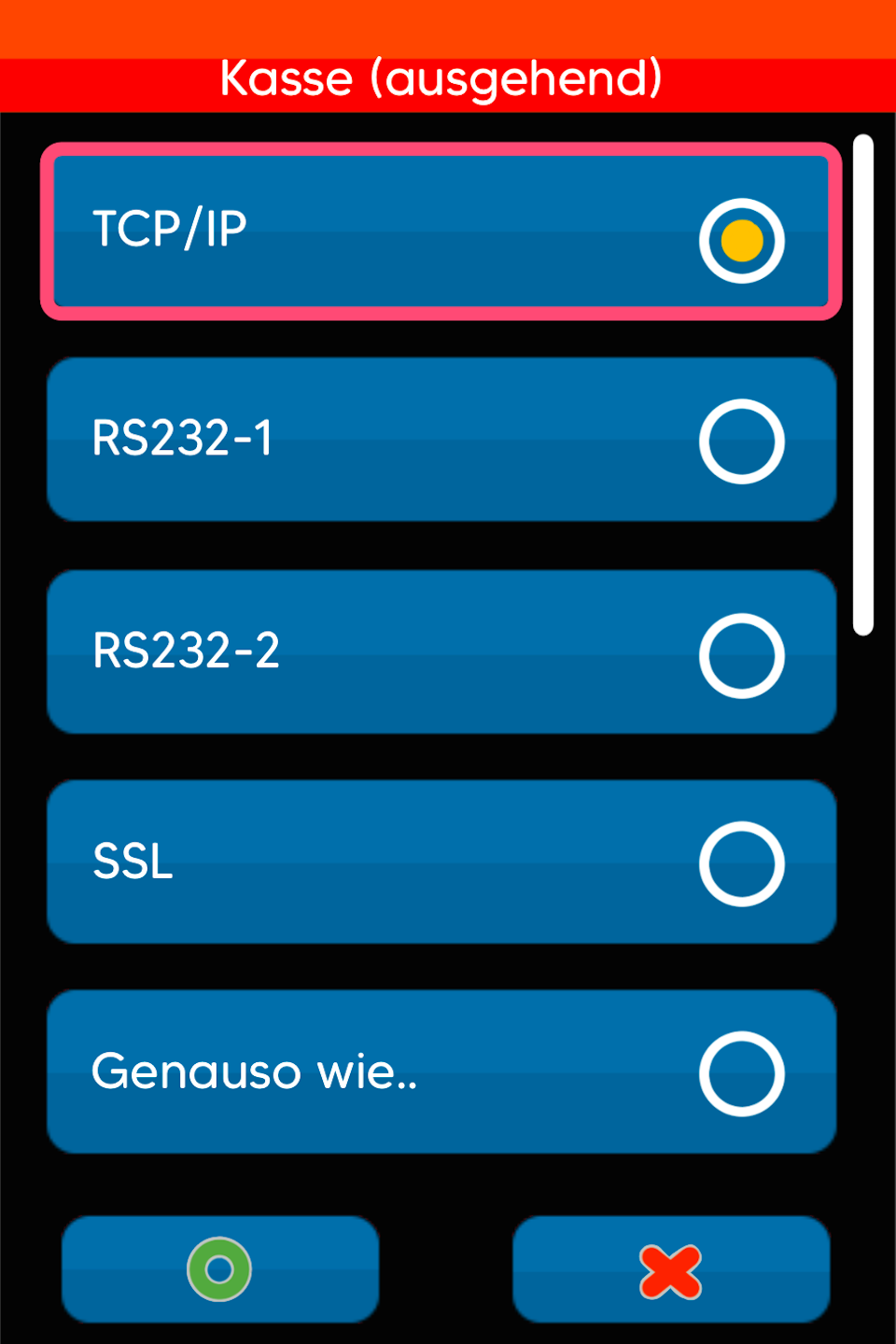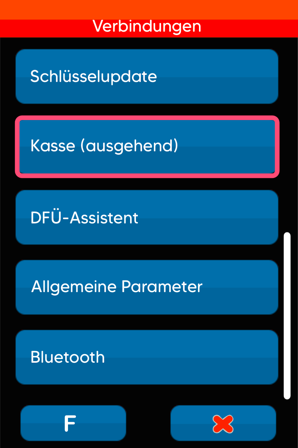 Bitte swipen/wischen Sie im Menü Verbindungen noch oben, um zum Menüpunkt Kasse ausgehend zu gelangen.