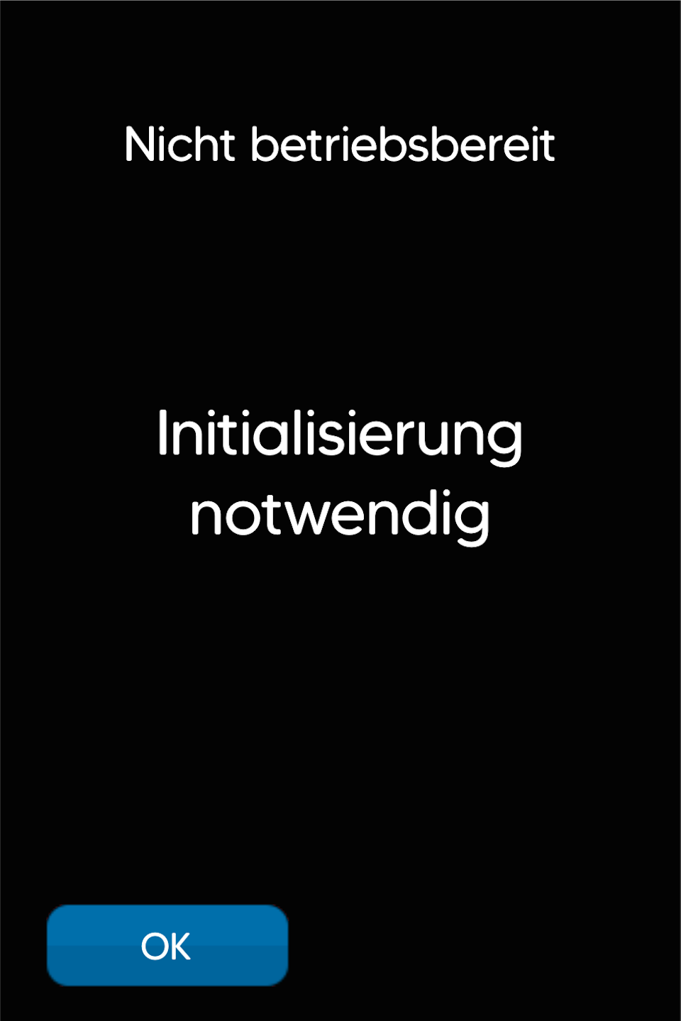 Nach dem Neustart erscheint im Display die Meldung: Nicht betriebsbereit - Initialisierung notwendig.