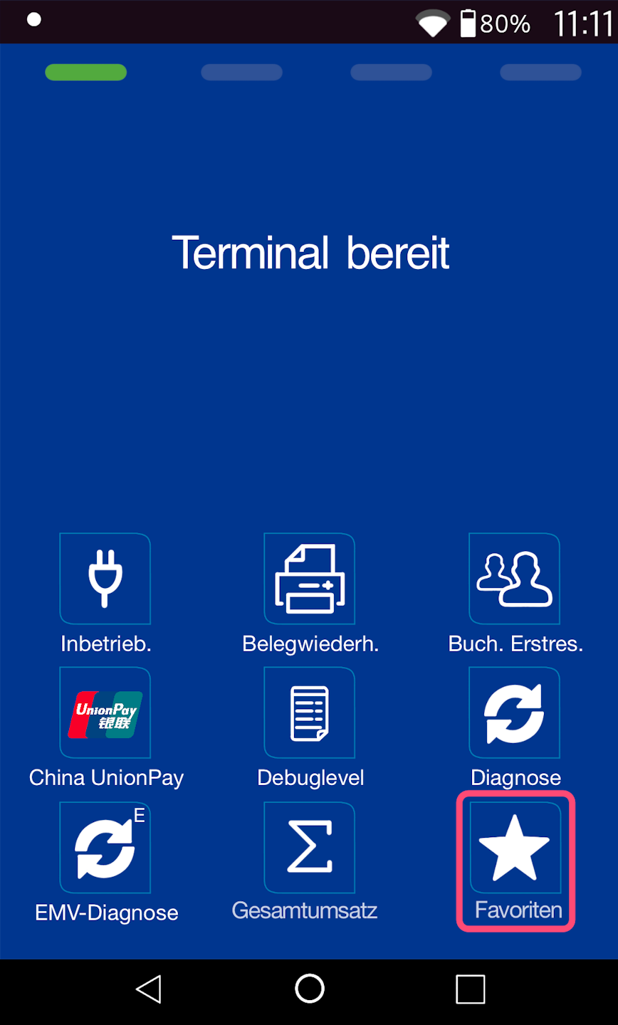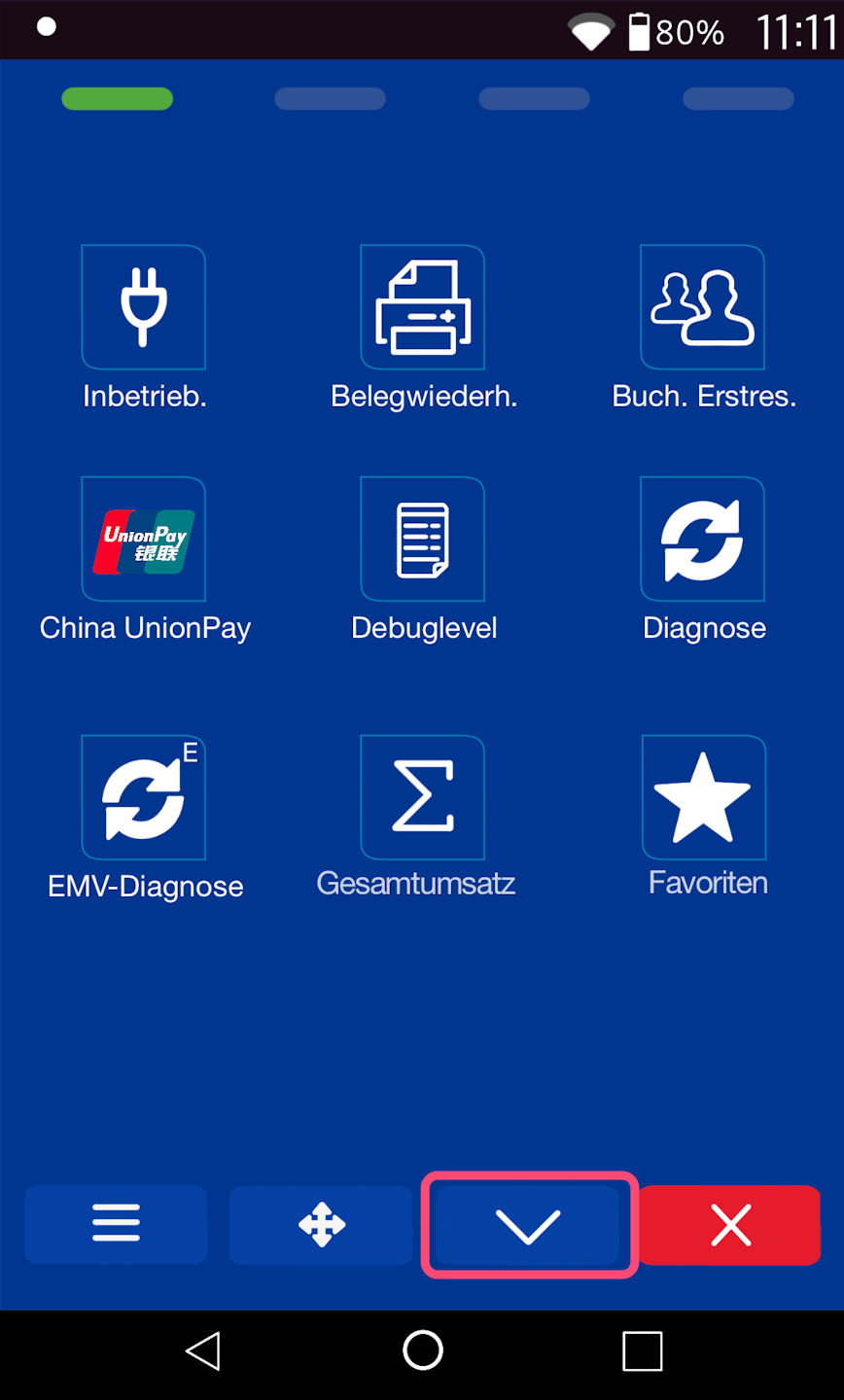 Bitte wählen Sie erneut die Favoriten aus (Abb. 1). Navigieren Sie bitte mit dem Pfeil nach unten zur 2. Seite der Buttons (Abb. 2).