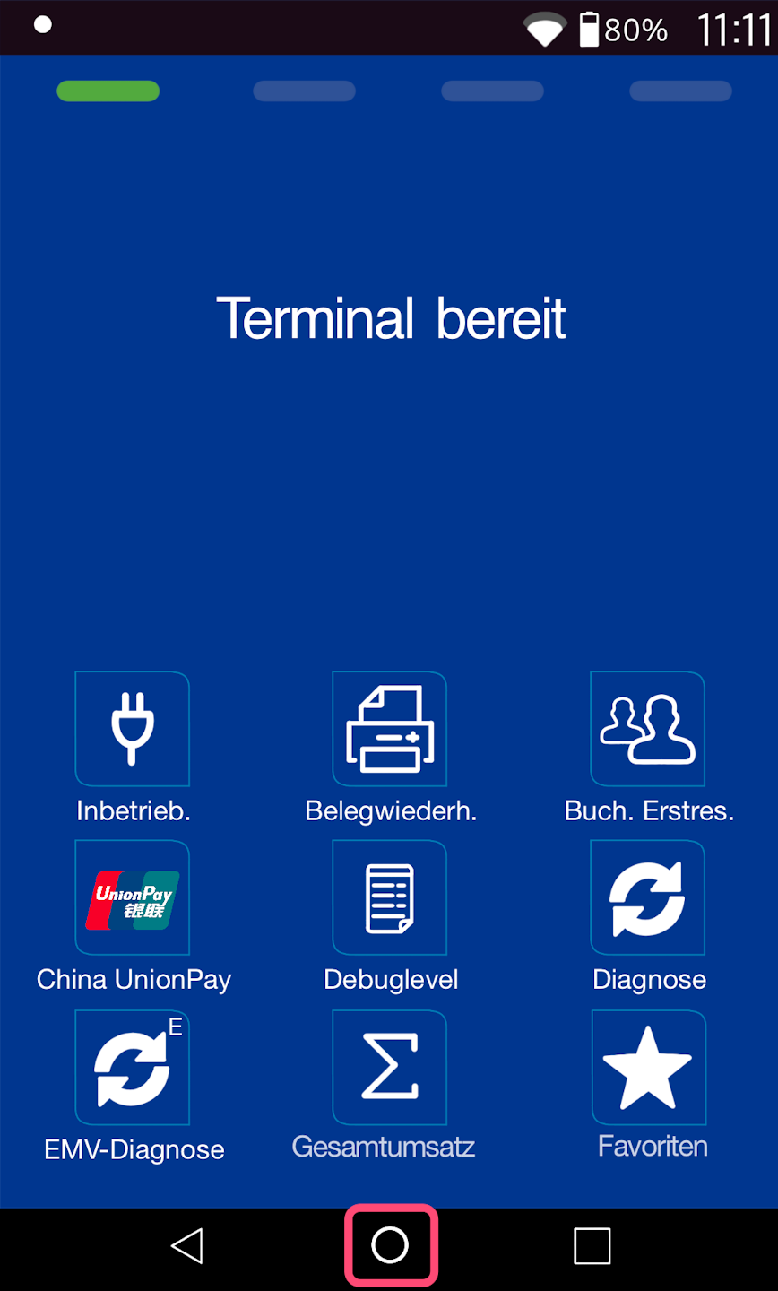 Sie sehen nun das Hauptdisplay der Payment-App.
