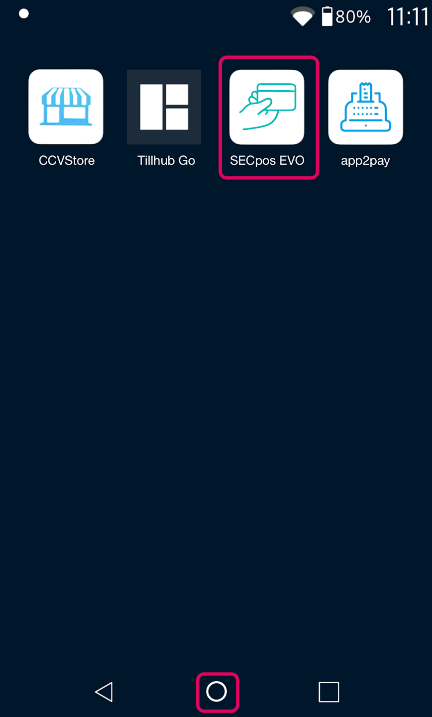 Bitte tippen Sie die SECpos EVO App an.