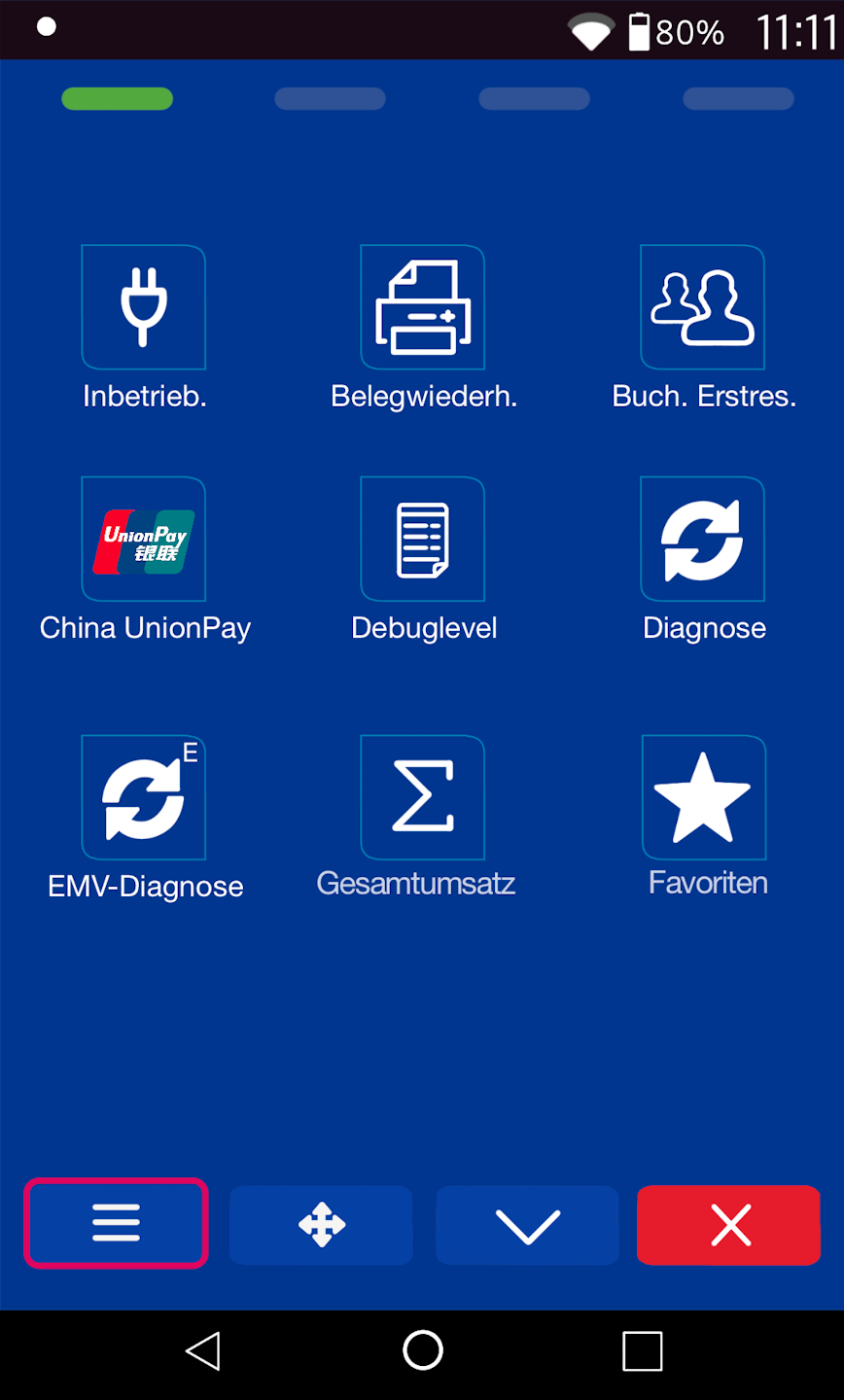 Bitte navigieren Sie an den unteren linken Bildschirmrand und wählen die Taste mit den drei waagerechten Streifen aus, um in das Hauptmenü zu gelangen.
