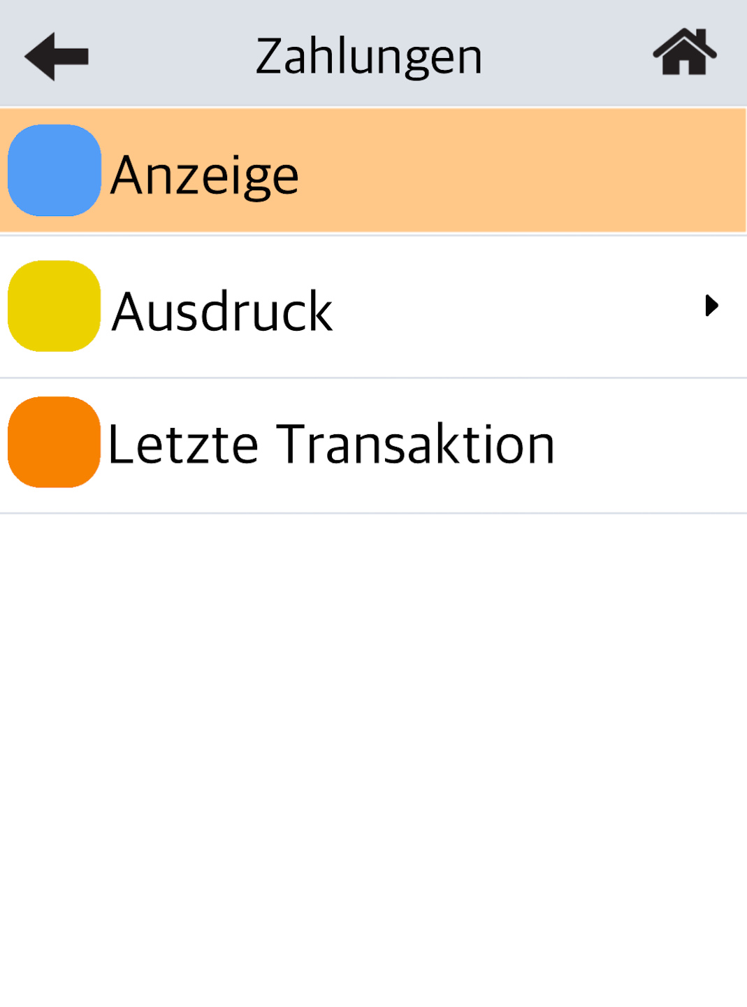 blaue Taste - Durchblättern aller getätigten Zahlungen