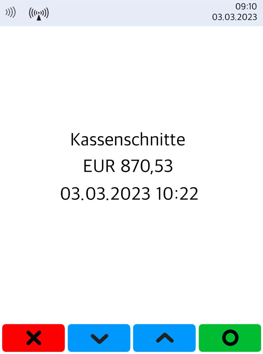 Eine Kopie des ausgewählten Kassenschnittes wird ausgedruckt.
