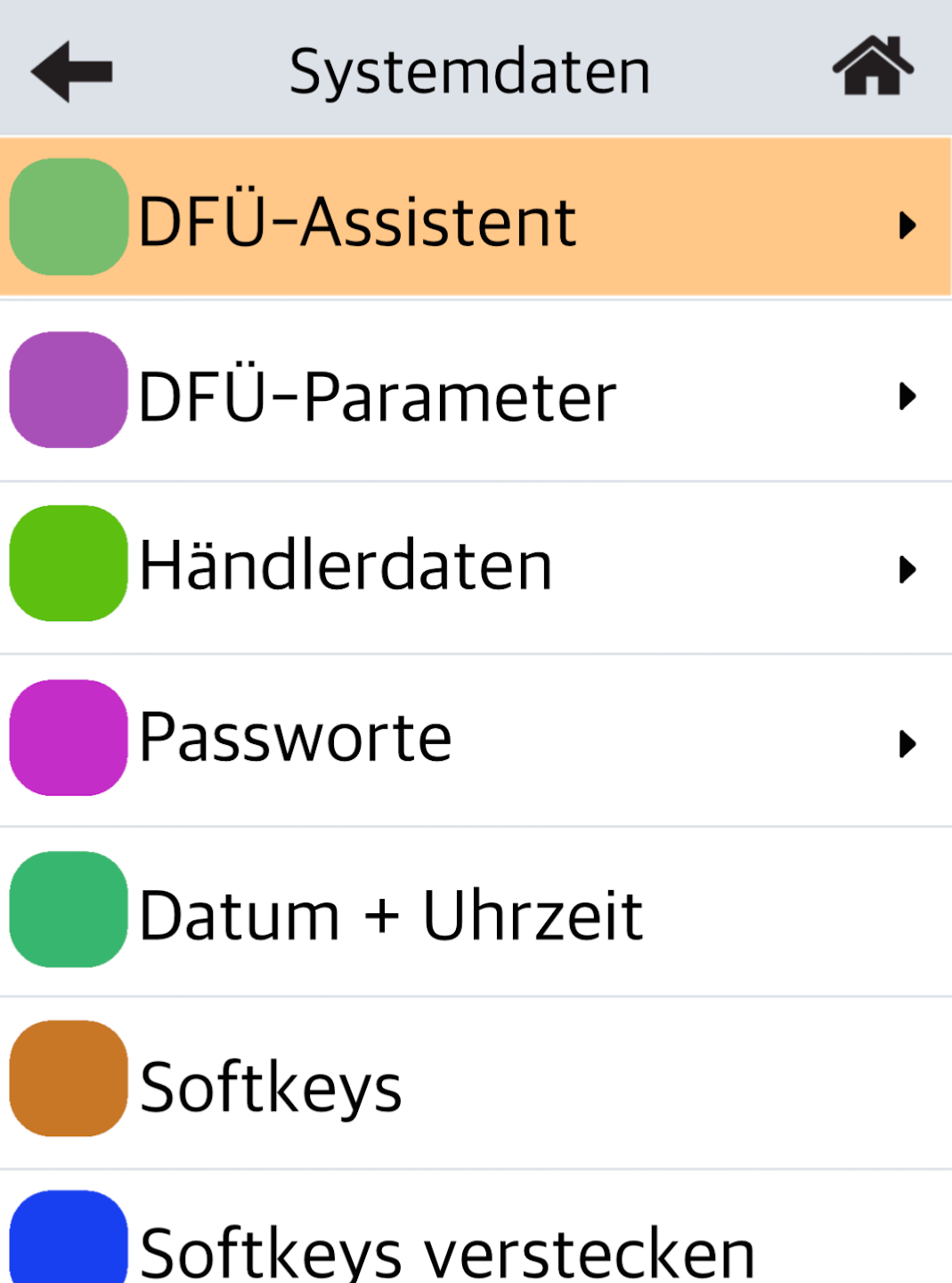Bei erfolgreicher Konfiguration gelangen Sie zurück zum Menüpunkt der Verbindungsauswahl. Bitte nutzen Sie oben rechts das Haussymbol, um wieder zu Ihrem Hauptdisplay zu gelangen.