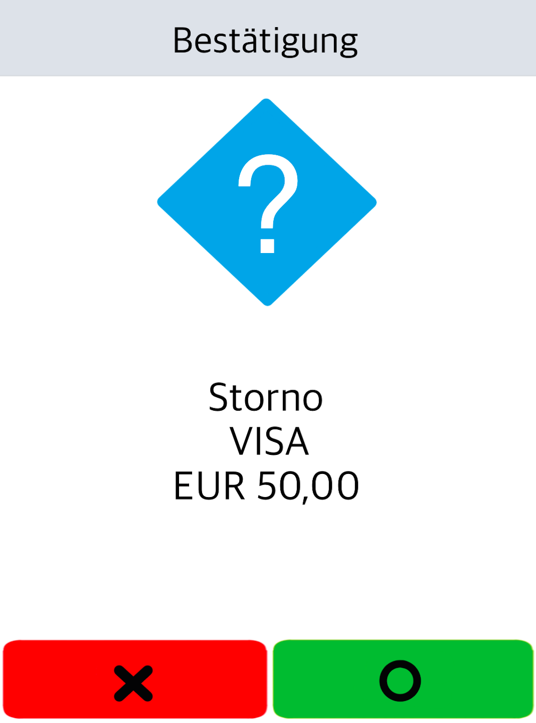 Bitte bestätigen Sie den zu stornierenden Betrag mit der grünen OK-Taste.