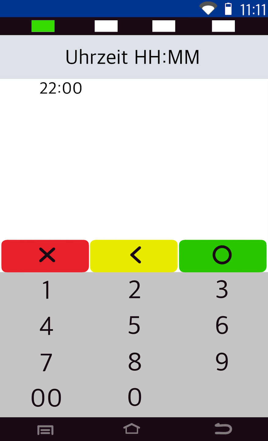 Nutzen Sie bitte die gelbe Korrekturtaste, um eine Uhrzeit einzutragen.