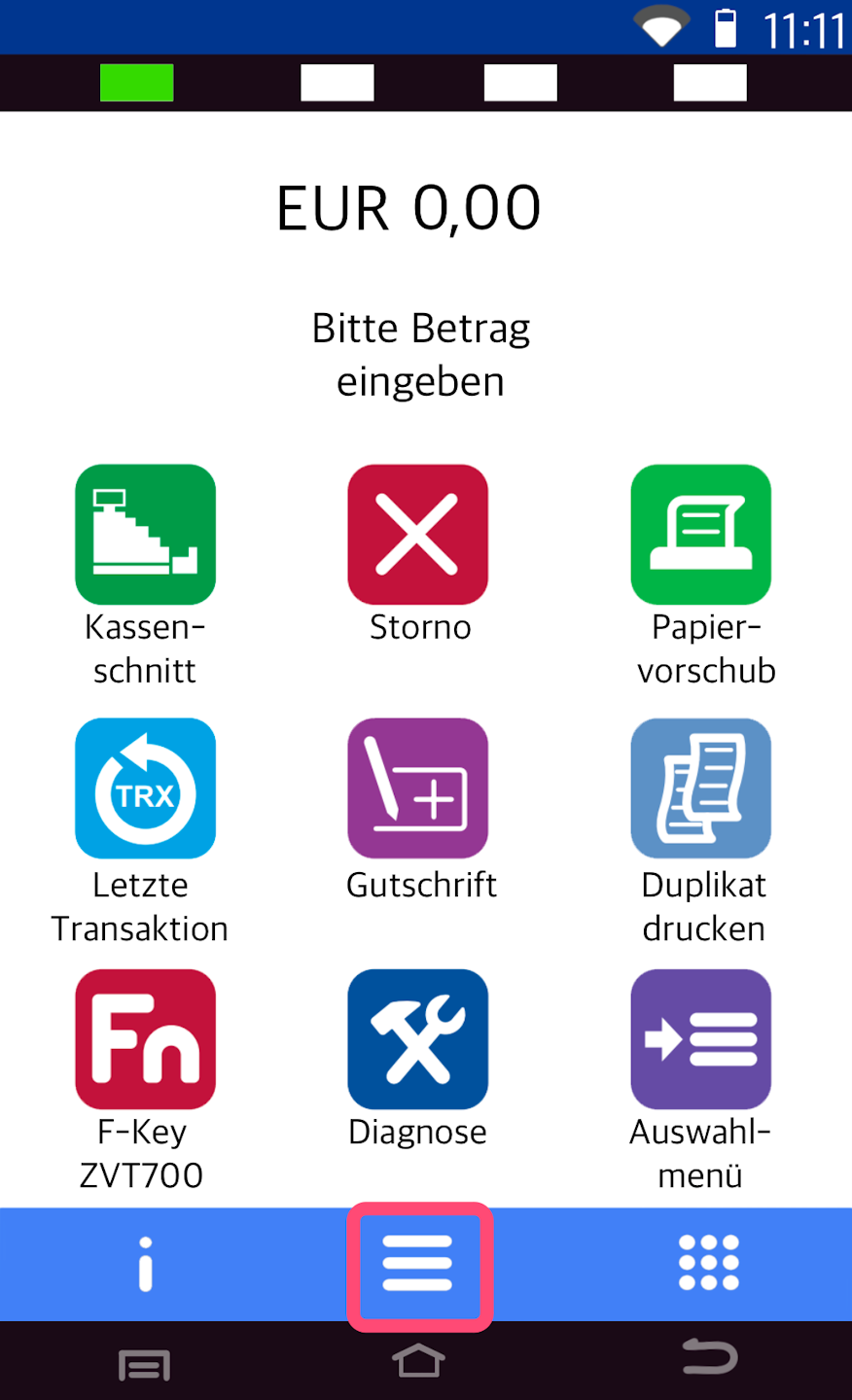 Bitte drücken Sie die Taste mit den drei waagerechten Streifen, um in das Hauptmenü zu gelangen.