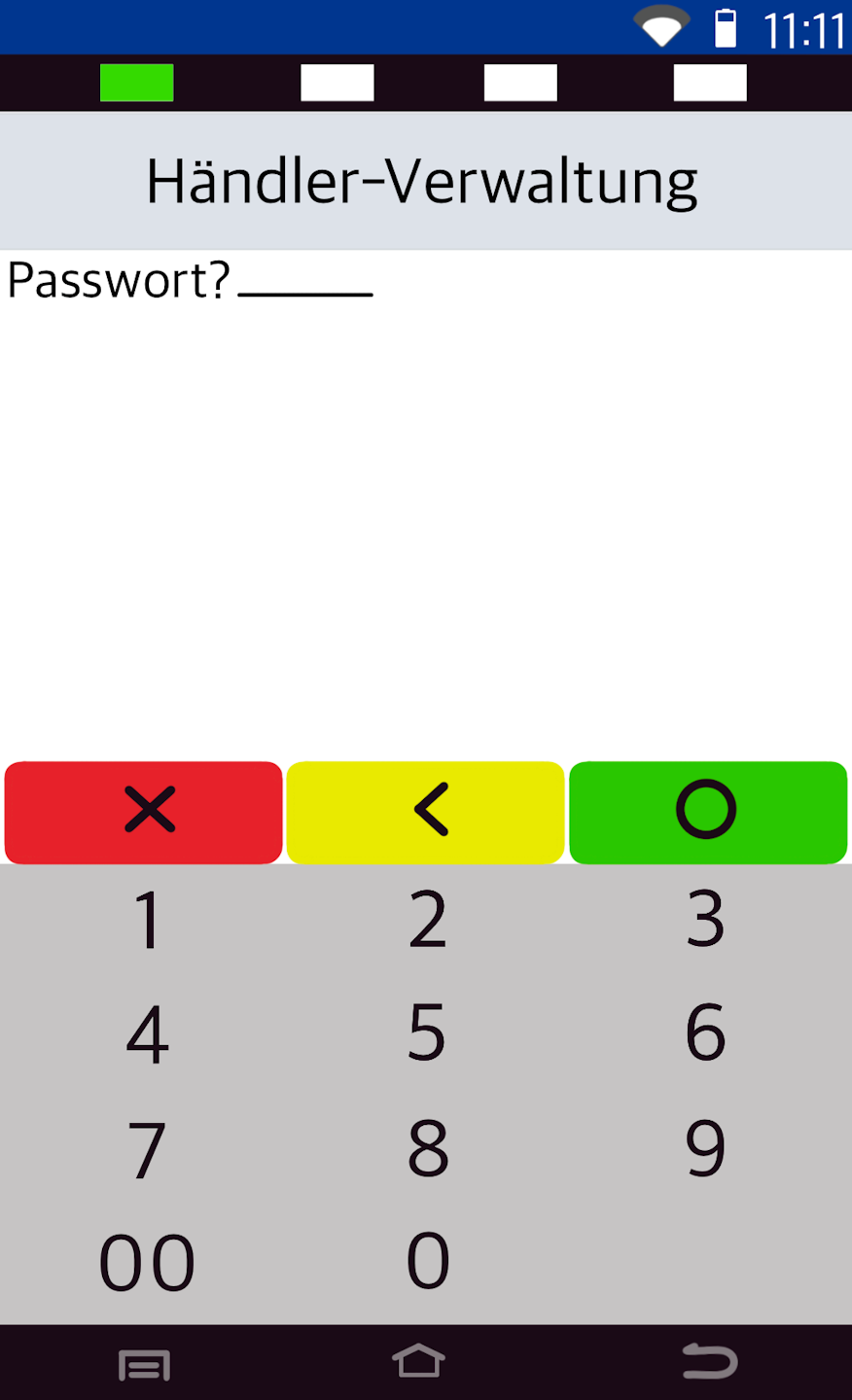 Bitte geben Sie das 6-stellige Händlerpasswort ein und bestätigen Sie es mit der grünen OK-Taste auf dem Display.
