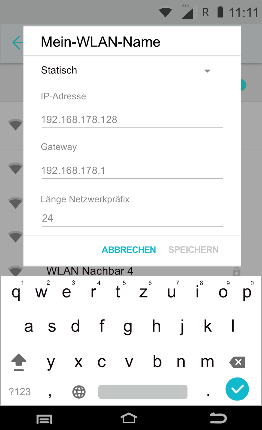 WLAN muss aktiviert sein, um die statischen IP-Daten einzugeben.