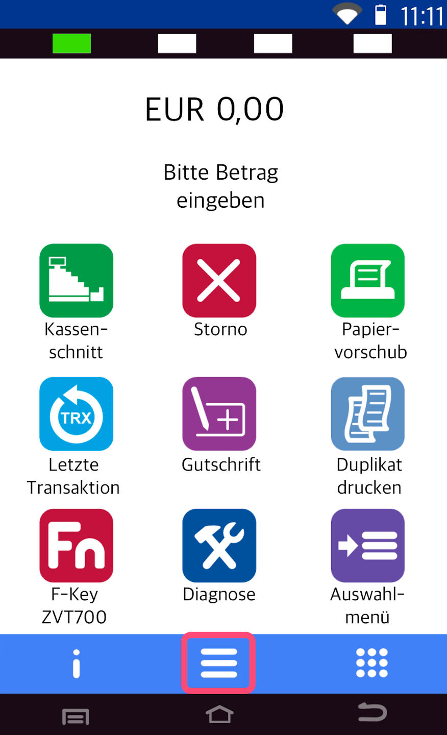 Durch Drücken des kleinen Haussymbols gelangen Sie wieder zu Ihrem Hauptdisplay in der Payment-App zurück.