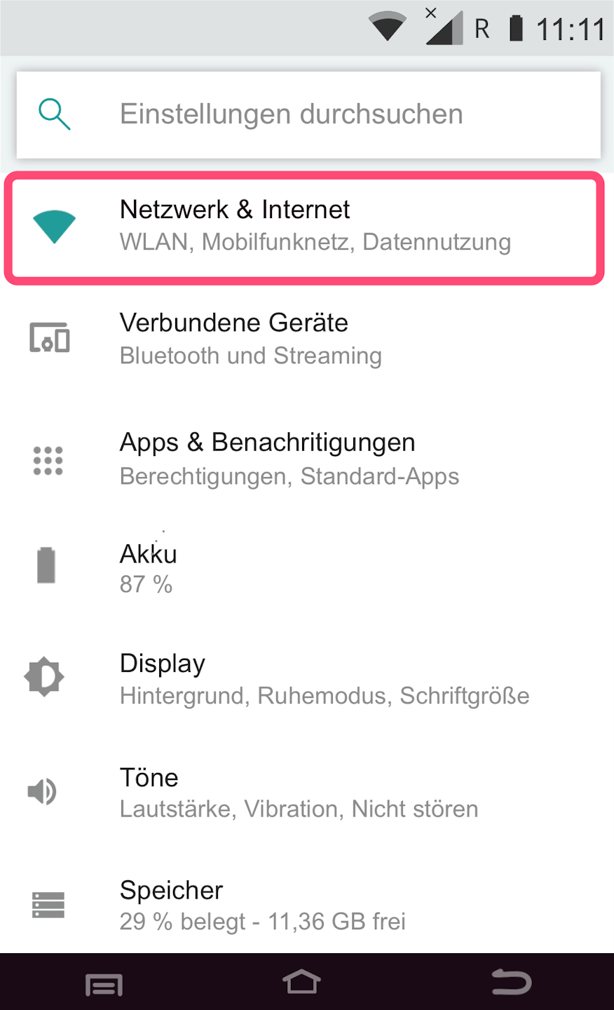 Wir befinden uns nun in den Einstellungen des Android-Systems.