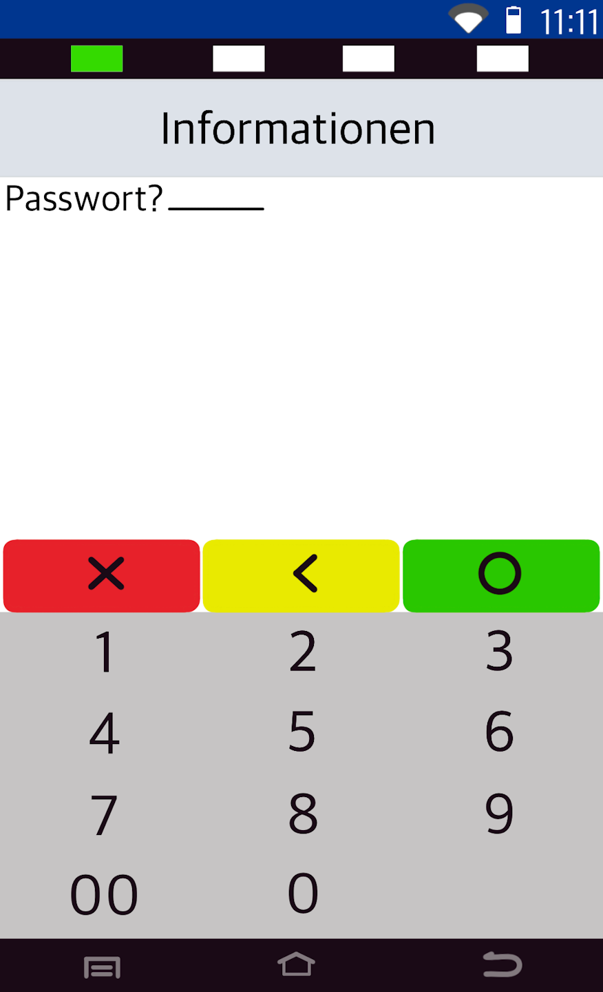 Bitte geben Sie Ihr 6-stelliges Kassiererpasswort ein und bestätigen Sie die Eingabe mit der grünen OK-Taste.